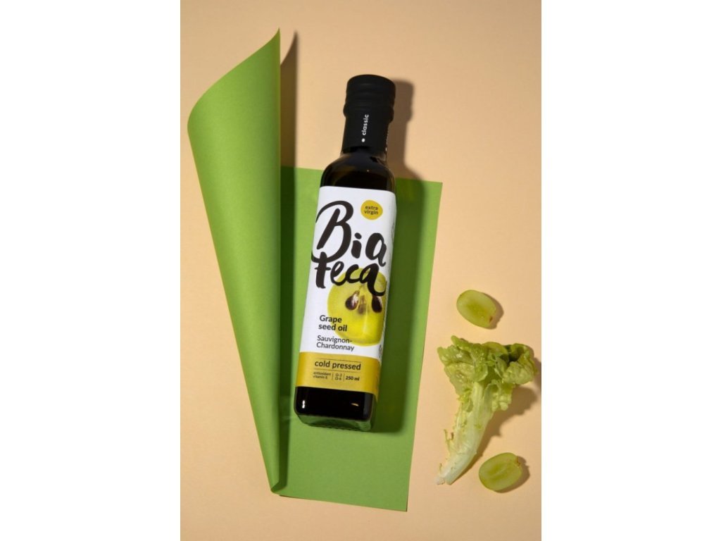 Olej z hroznových jader Sauvignon-Chardonnay 250 ml lisovaný za studena, nerafinovaný.